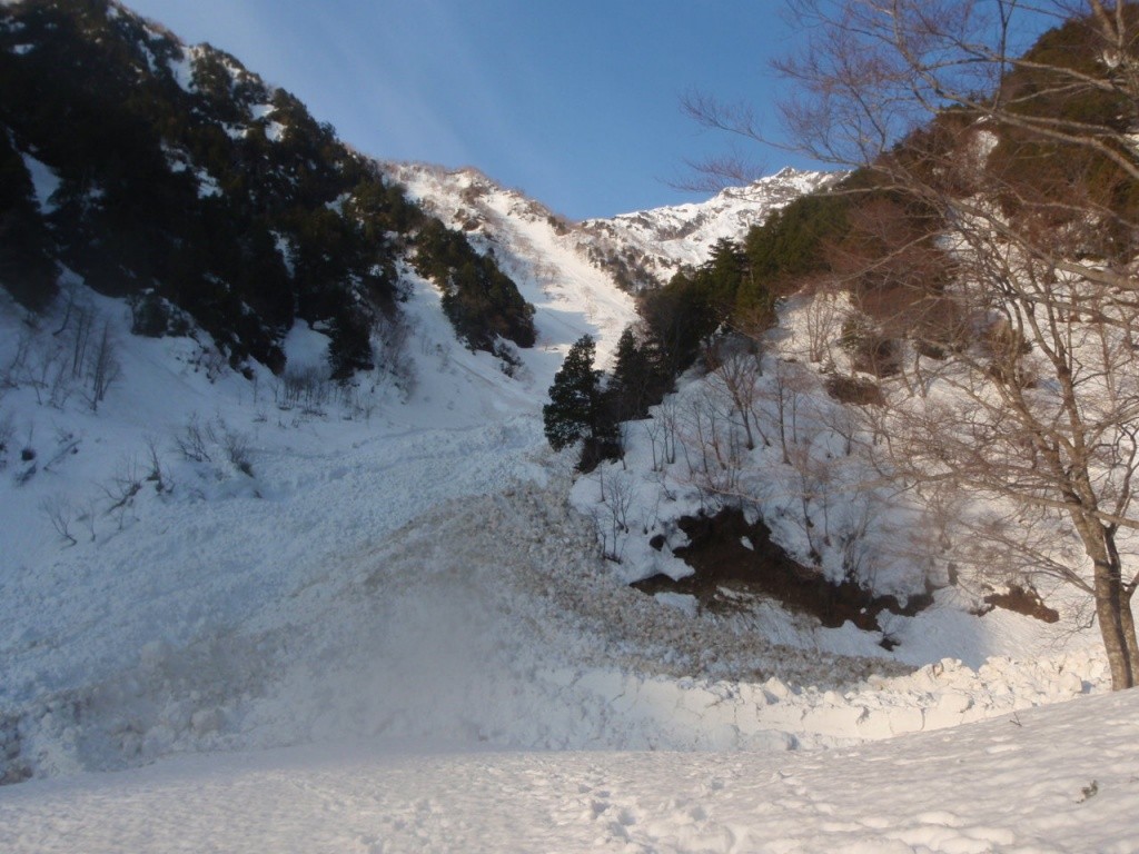 春山訓練・鹿島槍ヶ岳 2015/04/13 Comment : 0 4月11日12日 春山訓練に行きました。西俣出合付近でテント泊しました。泊り組、土曜日日帰り組、日曜日日帰り組とそれぞれの時間の中での参加ではありましたが、赤岩尾根、布引尾根、ダイレクト尾根、鎌尾根への山行、歩行訓練、確保訓練など、班に分かれて行い、充実した2日間となりました。 今年は雪が多かった年ですが、雪解けは早いようで、山はすでに黒々としていました。西沢のデブリ(写真)もすさまじいもので、途中の沢でも木々が雪崩によってなぎ倒され、激しくあれている箇所がありました。 記 及川(園田) Tweet
