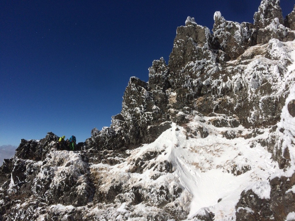 中山尾根 2015/12/23 Comment : 1 美濃戸6:00-赤岳鉱泉-中山尾根取付9:30-日ノ岳13:30-行者小屋-美濃戸16:00 12月19日、鈴木・安藤で中山尾根に行ってきました。 暖かい日が続きましたが、前日の雪のおかげで、八ヶ岳らしい冬壁になっていました。特に上部岩壁から上は風も強く、えびのしっぽも発達し、ホールドを掃除しながらのクライミングもありました。稜線に抜けると、ガスも抜け、良い眺めでした。 写真 鈴木 記 安藤 Tweet