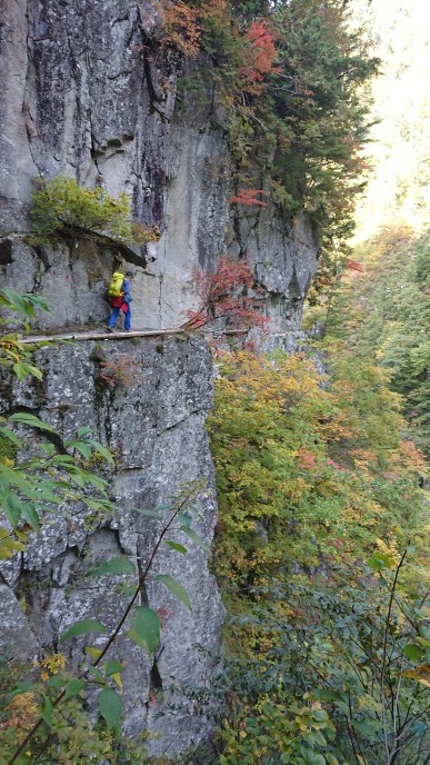 黒部峡谷 下ノ廊下 2018/10/26 Comment : 0 2018年10月22~23日、永沢、井上で下ノ廊下に紅葉狩りに行って来ました。 晴天に恵まれ、2日間素晴らしい紅葉と峡谷でした。黒部ダムから阿曽原温泉泊で欅平に抜けましたが、旧日電歩道の長さと黒部の残雪の多さに驚きました。元会員の方にも行き合い、楽しい山行となりました。 記 井上 Tweet