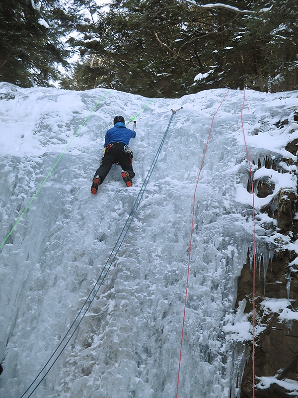 ここのところの暖かさで氷があるかどうか心配でしたが、なんとか登れる程度には凍っていました。