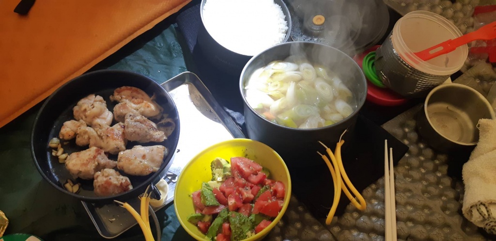 1日目は、西俣出合にテントを張り、その周辺で班ごとに雪上歩行・滑落停止・支点の構築・スタンディングアックスビレイ・スタカットなどの訓練をしました。先輩方に丁寧におそわりつつ、夕方までみっちりと訓練することができ、充実した1日となりました。