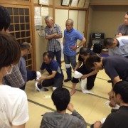 7月10日木曜日、本郷公民館で救命研修会が開催されました。 今回は、骨折や止血をした際の応急処置の仕方を学びました。参加者は24名でした。 三角巾の基本的な折り方をまず学び、膝、ひじ、腕、頭部などを負傷した際の応急処 ...